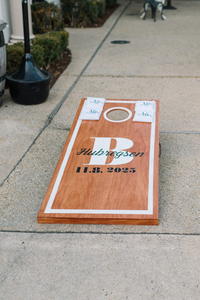 We wanted the day to feel as playful as it was prestigious. During the cocktail hour, we curated a selection of custom lawn games, offering guests a relaxed, interactive experience before the formal grandeur of the ballroom.