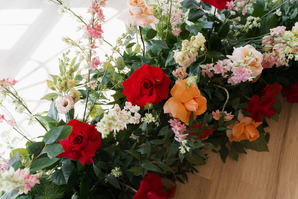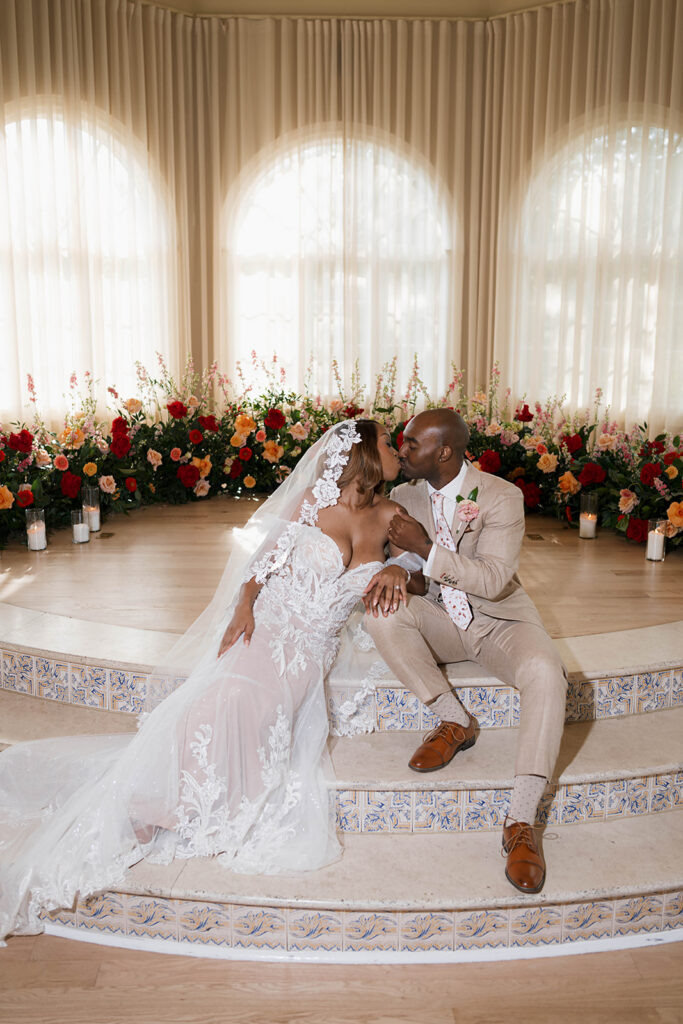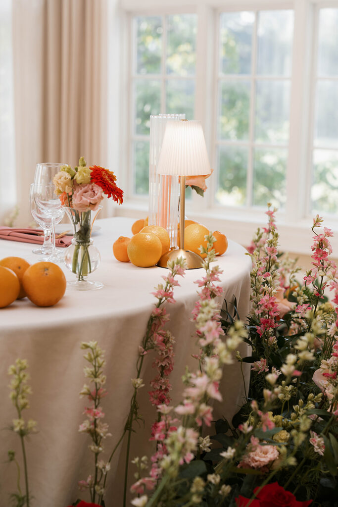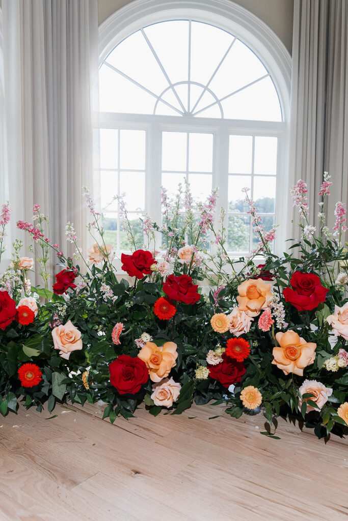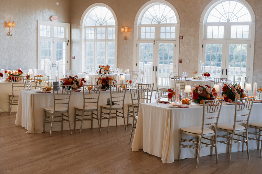 Ashley and Brian’s ceremony was intentionally intimate, allowing every detail to feel meaningful and beautifully curated. Inspired by the warmth and romance of a sunset, the bride envisioned a color palette that felt rich, glowing, and full of depth. Florals took center stage, transforming the grand ballroom into a romantic garden-inspired setting with lush arrangements of red roses, soft blush blooms, and peach tones that mirrored the hues of the evening sky. From the bride’s bouquet to the candlelit reception tables adorned with fresh citrus and layered textures, each floral moment was thoughtfully designed to reflect their vision and elevate the atmosphere. The result was a celebration that felt personal, refined, and effortlessly romantic.